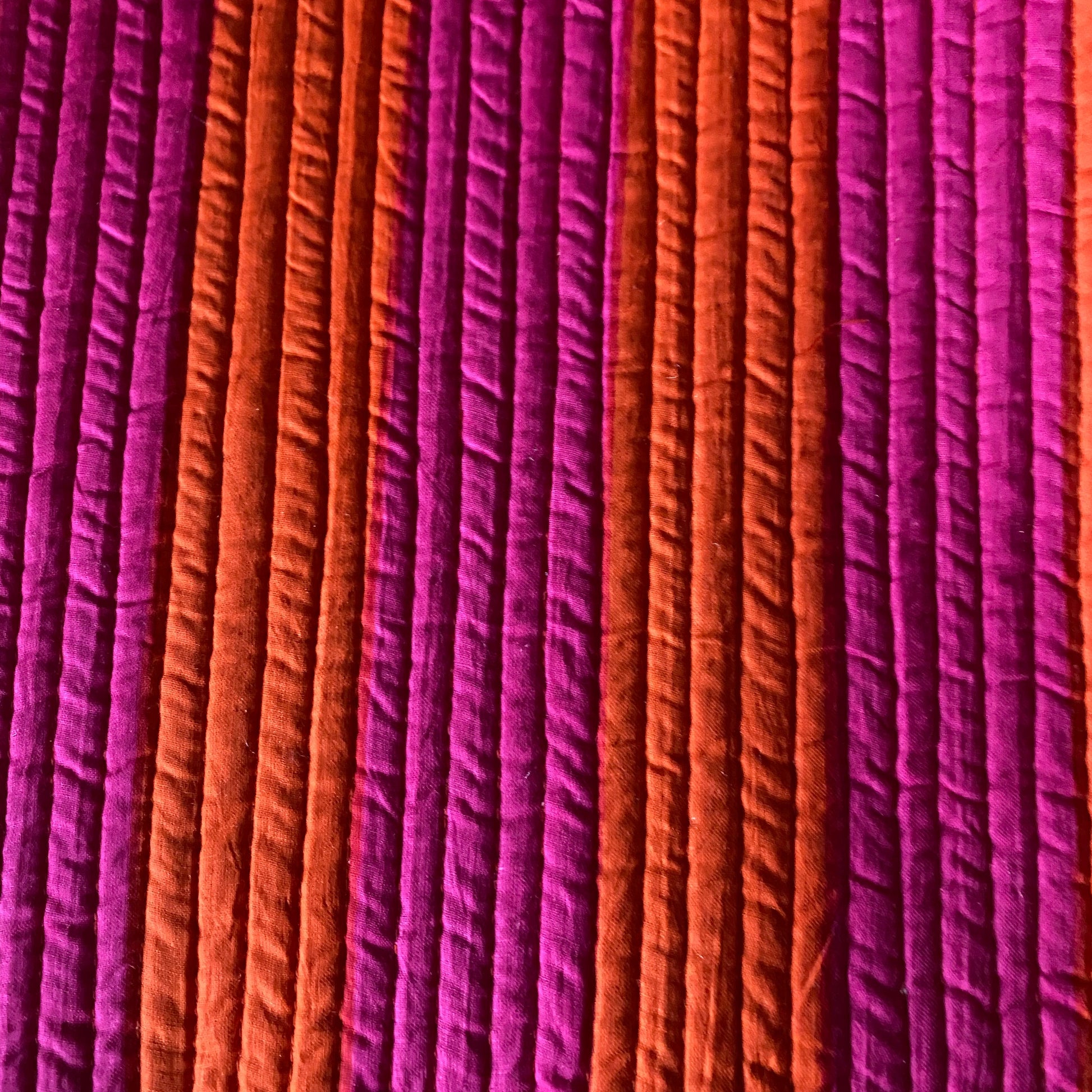 Combinación de print rayas anchas naranja y fucsia, con cuadros. Top tendencia. Un nivel muy top donde lo pongas.